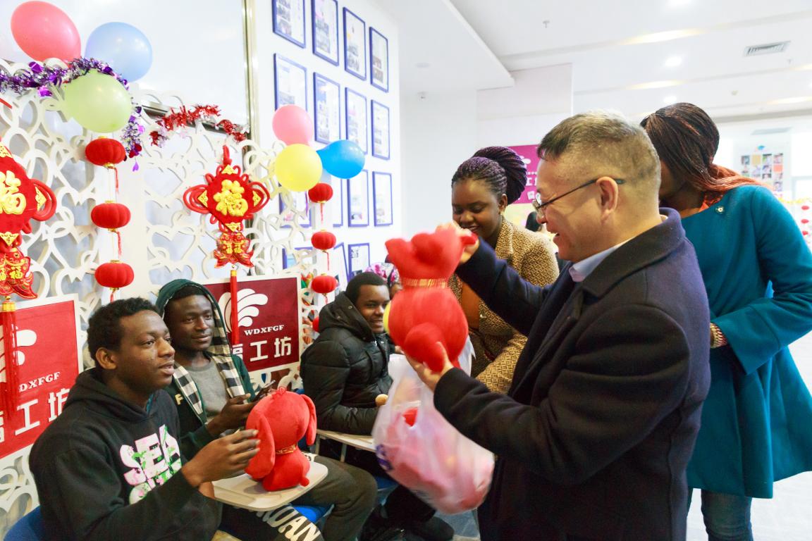 与会领导和老师们为每一位国际学生送上狗年吉祥物,与国际学生共进午餐,在温馨的氛围中听国际学生畅谈新春感想,欣赏他们表演歌曲和中国武术。塔吉克斯坦籍2017级商务汉语专业学生AMIROV RUSTAM说“今天,区块链游戏