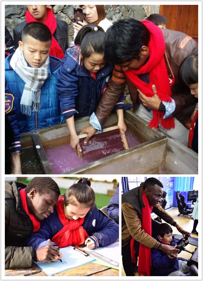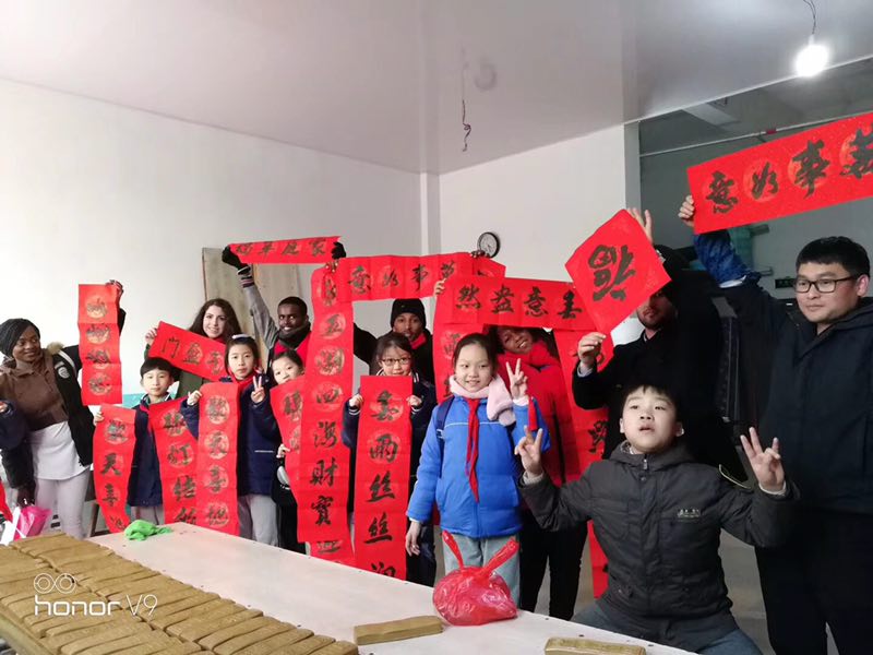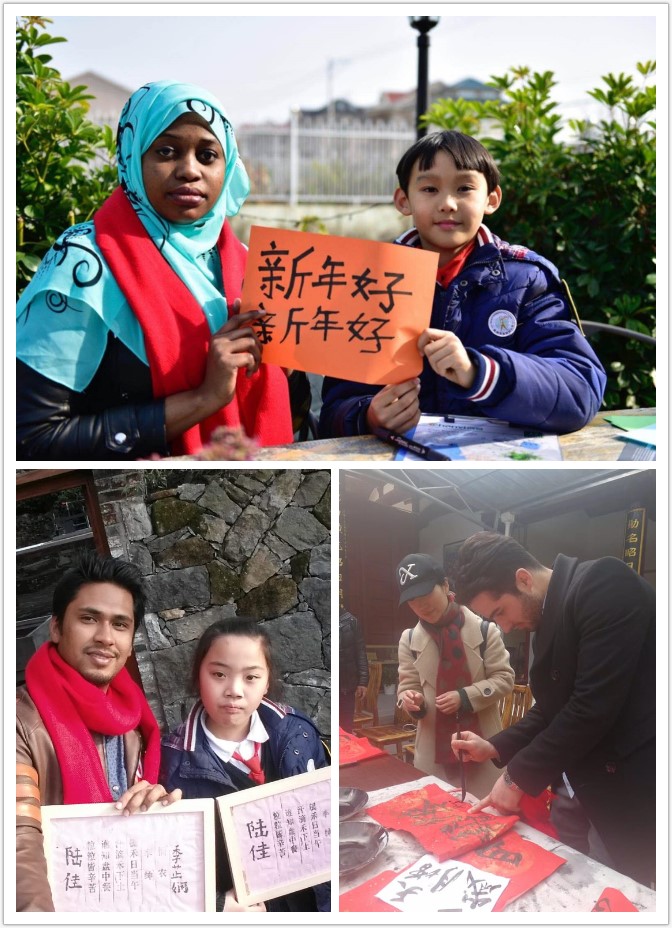 一楼学生会办公室等待。活动现场,1-2名国际学生结对1个家庭,当担国际文化小使者的新田园小学的小朋友与家长一起分别向结对的国际学生送上象征吉祥如意、红红火火的大红围巾,国际学生时而用简单的英文、时而用简单的中文与小朋友及家长进行交流,很快他们就熟络起来了,还向小朋友及家长介绍了温大校园,带着他们体验了航空实验室的模拟飞行。下午,国际学生跟随结对家庭,体验了东山书院的古法造纸术和木活字印刷术,步行了有着千年历史和丰富的文化底蕴的印象南塘,领略了七都的自然风光和生态农耕特色,游览了以“中国四大名屿”和“瓯江蓬莱”而著称的江心屿。