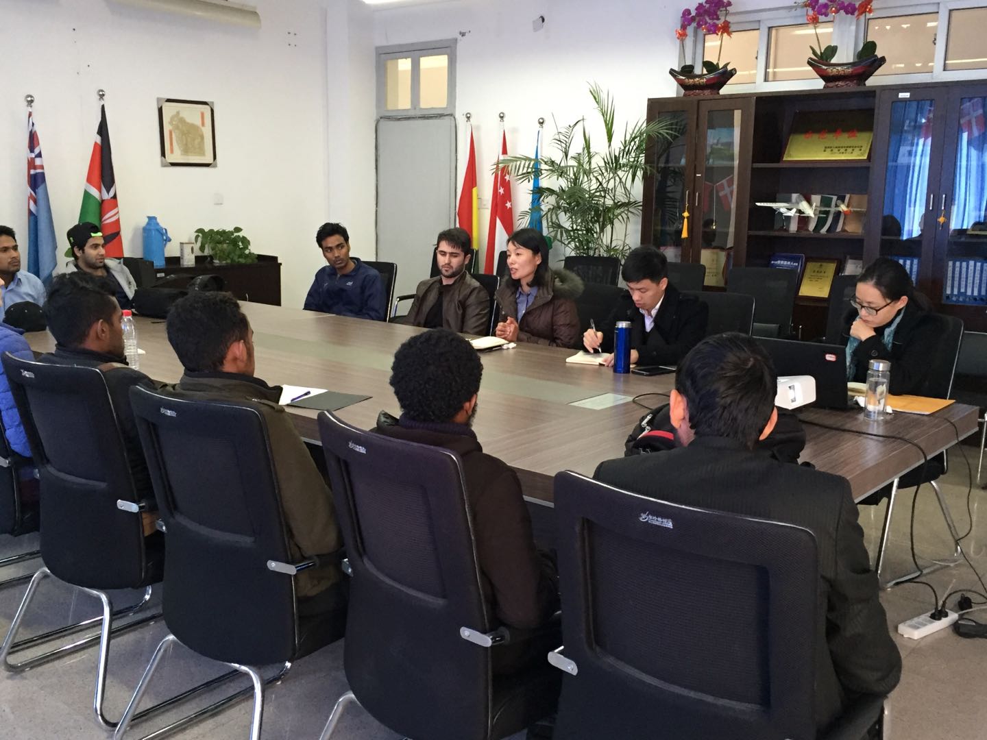 (留管部)党总支副书记陈文远、学生科副科长谢坚及其他老师、全体中国政府奖学金生参加,座谈会由陈康豪老师主持。