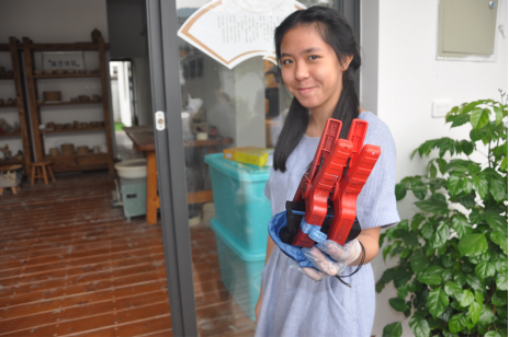 为此次活动做了充分的准备,杨老师表示泰国学生是温州首批来此进行体验的学生,因此他们十分重视,并希望所有到此体验的同学都可以感受到蓝夹缬的美丽。