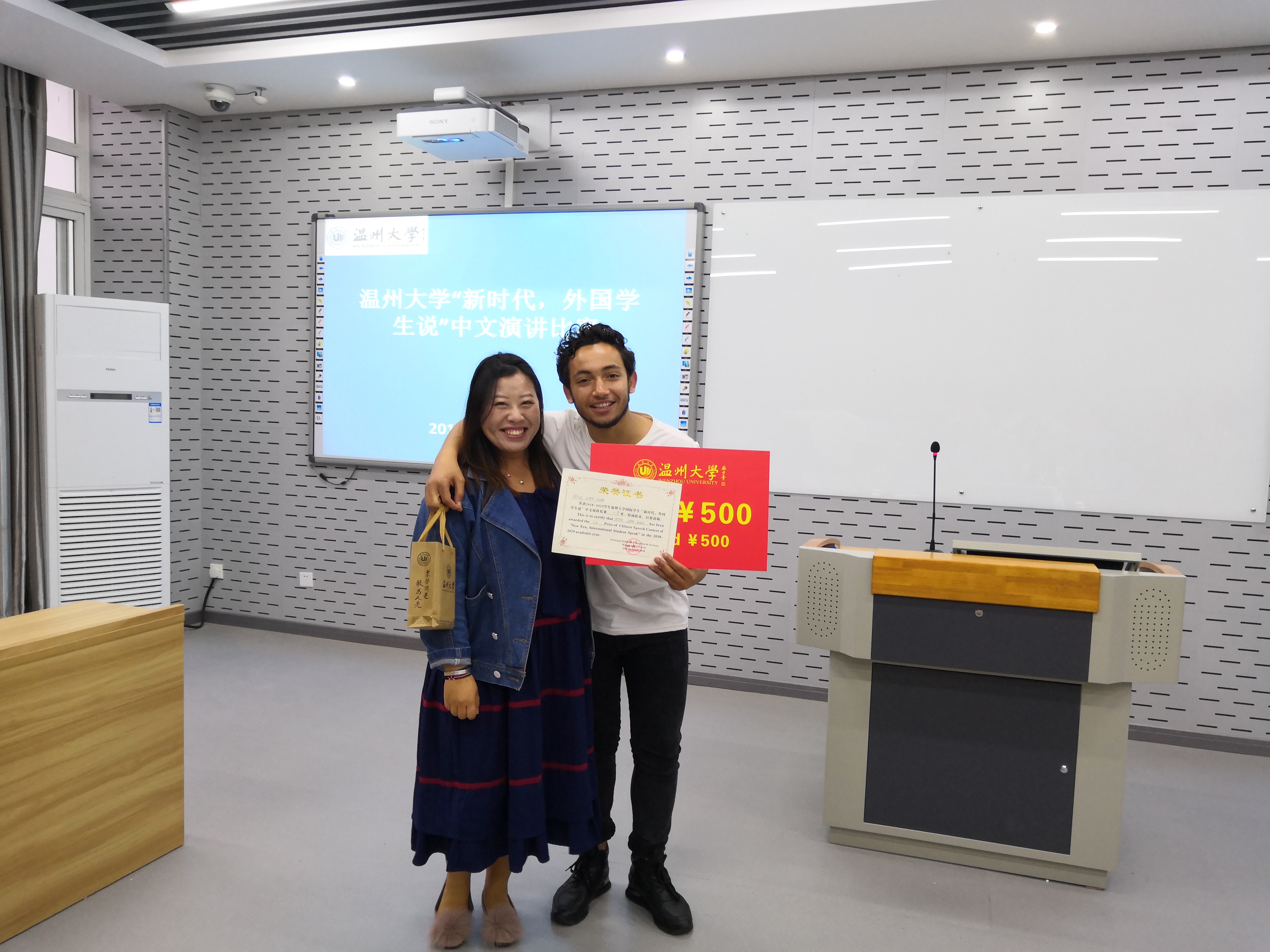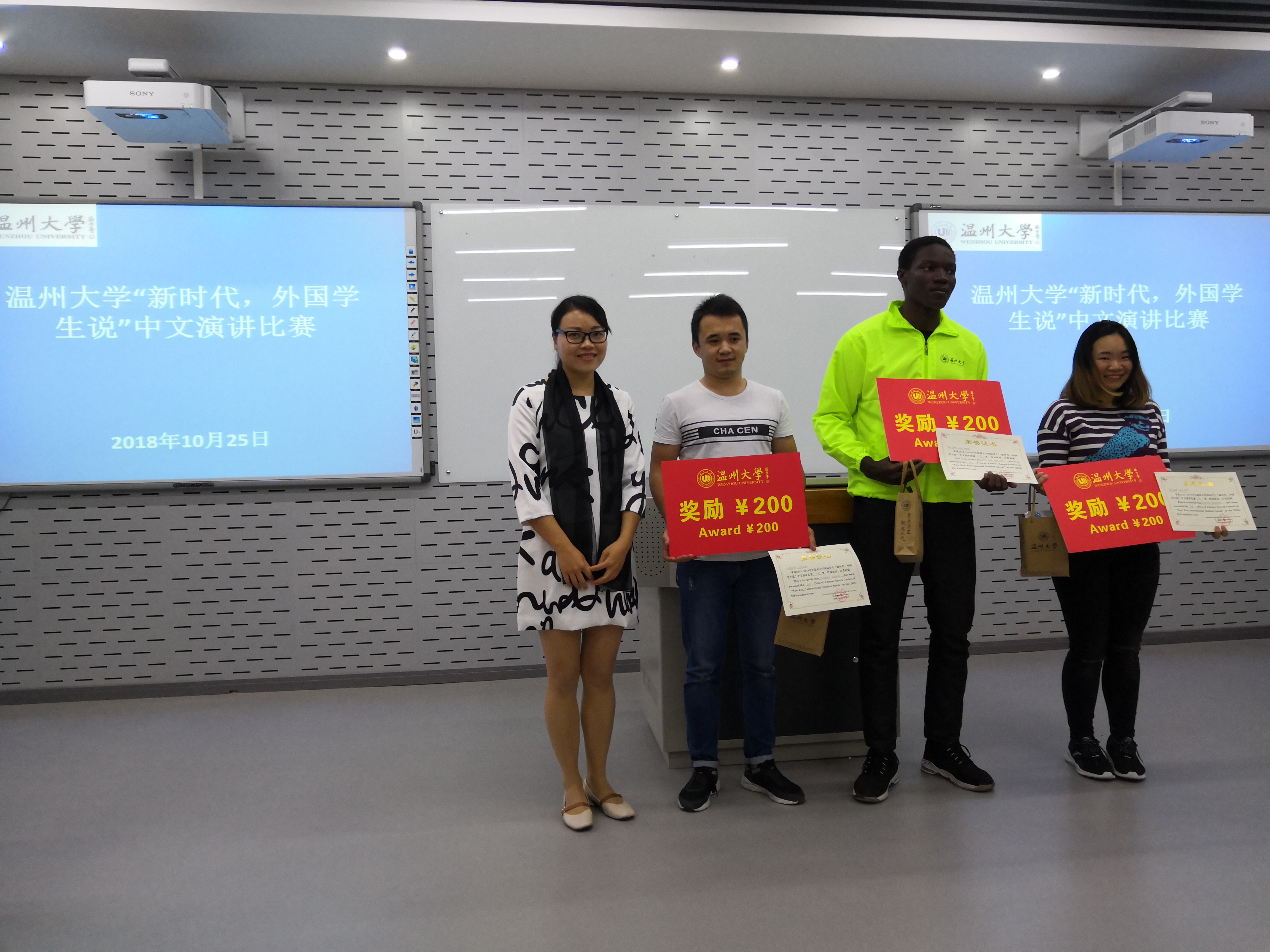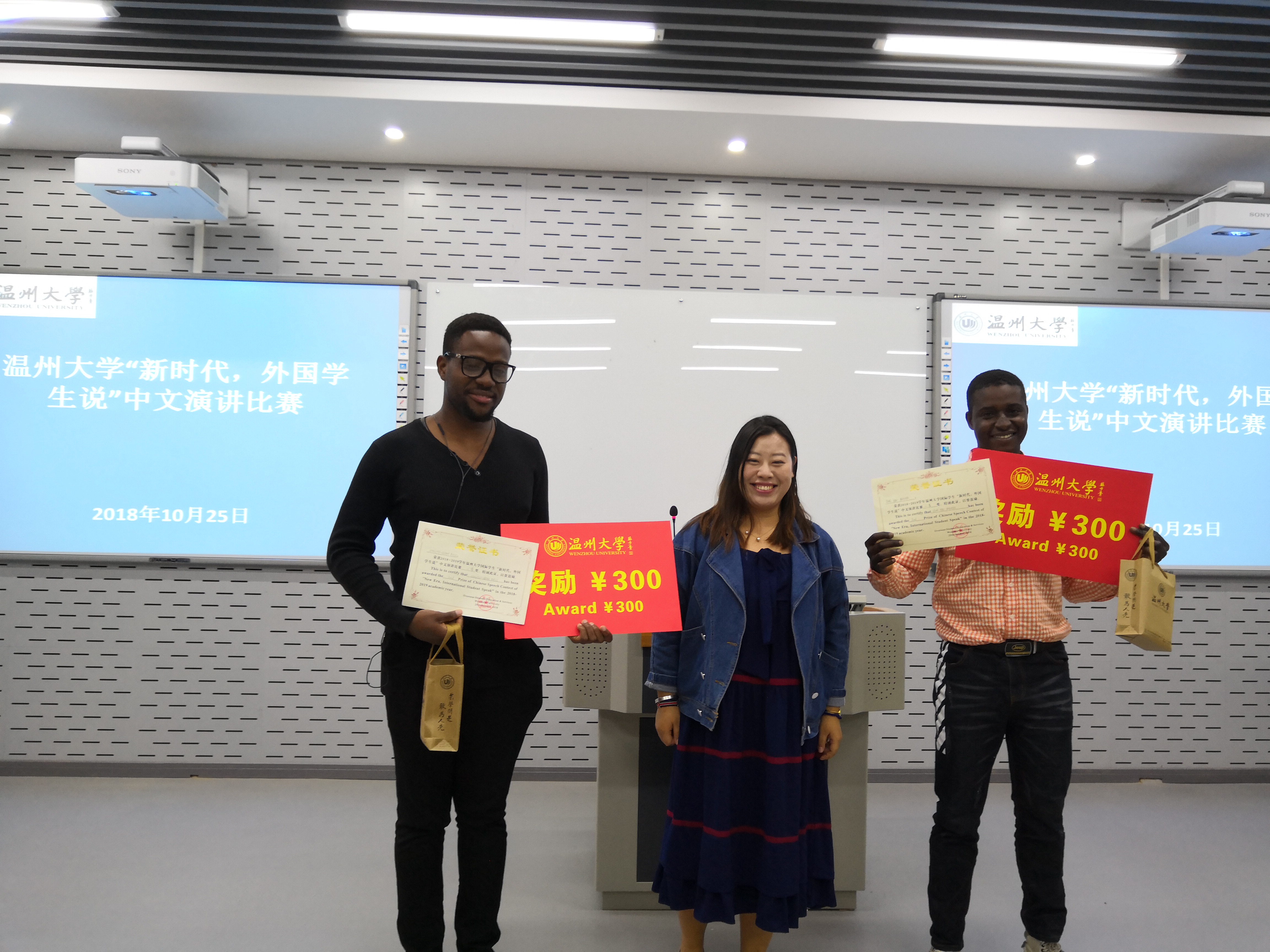 吃月饼过中秋节是非常温暖的一件事,让他体会到家的感觉。来自加纳的王汉别出心裁,以一个“来自加纳的小伙子的故事”为主题,向在场师生分享了自己在中国学习、生活的有趣经历,他的演讲诙谐幽默、语言流畅,赢得阵阵掌声。来自塞拉利昂的JENG ABU BAKARR谈到他眼中的中国时说道,中国的科技发展、快捷支付方式、畅通的交通网络和便利的出行方式都让这里的生活变得非常舒适,他期待今后能在中国继续深造,走进更多城市,感受这里的一切。活动最后,评委老师分别为获得一、二、三等奖的学生颁奖。