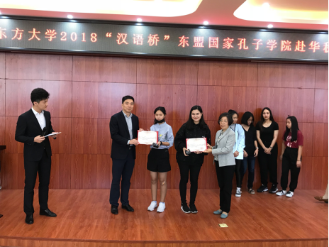 此次秋令营还选举了最佳个人表现奖:苗麦麦和王雅婷和最佳演讲小组奖:夏彤、曾秀慧、李莎娜和许灵巧。由叶苗院长和章毓林院长颁发证书。