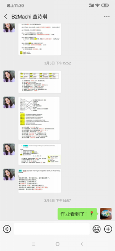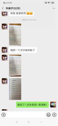 (2)书面作业方面,学生可以选择手写拍照或在电子版本上输入的方式完成。口头作业可自行录制音频。学生把作业通过微信发给老师检查批改。
