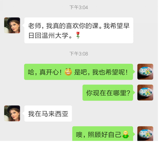 教师在教学内容中精心添加了一些与疫情、防控有关的内容,丰富了语言学习的内容和实用性。例如,在讲解教材中的“串门儿”一词时,并未局限于解释词义或介绍传统的春节习俗,而是借机向学生展示了今年春节我国政府提倡的“不串门、不聚集”的防控措施;由“脸有点儿发热”中的“发热”一词,延伸至“发热门诊”中“发热”一词,在词义辨析的基础上,使学生认识了当前特殊语境下的常见词汇。
