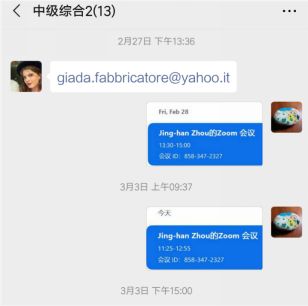 为照顾不同学生可能因时差等原因错过上课时间,在课前给学生发布课程提醒,包括会议ID,会议时间等。