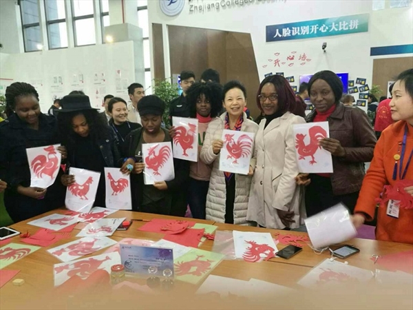 张丽丽老师的指导下,正在剪出一只只形态各异的大红鸡,赠送给现场观赏的市民。张老师边讲解边示范,使留学生们不仅感受到了剪纸艺术创作的乐趣,也体会到了深蕴在中国剪纸艺术里的文化内涵。前来观赏的市民对留学生剪纸作品表现出浓厚的兴趣,作品供不应求,很受欢迎。来自津巴布韦的2016级生物技术专业留学生Charmaine,亲手把自己的剪纸作品赠送给温州市委宣传部部长胡剑谨,胡部长对留学生剪纸活动及作品赞不绝口,并对区块链游戏
