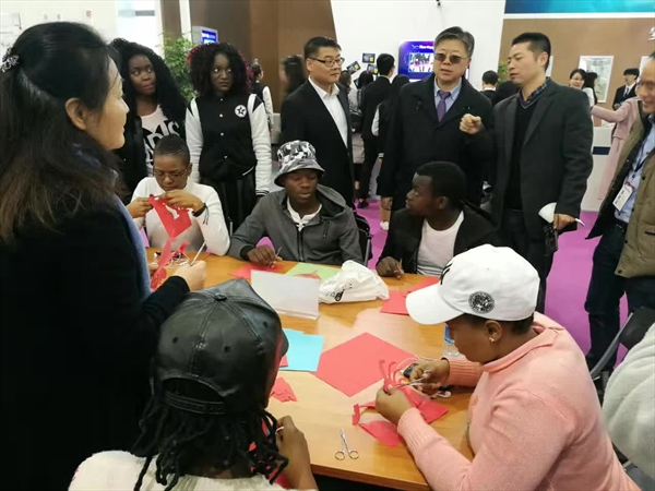 留学生文化课实践学习的一次创新之举,旨在让学生通过交流互动进一步提升剪纸艺术水平和动手能力。为了让留学生在文博会上能展出好作品,张丽丽老师事先加班加点,熬夜准备,现场她不厌其烦地一遍遍讲解,一点点示范,直至留学生剪出满意的作品为止,可以说,每一份学生作品都凝聚着张老师的心血。