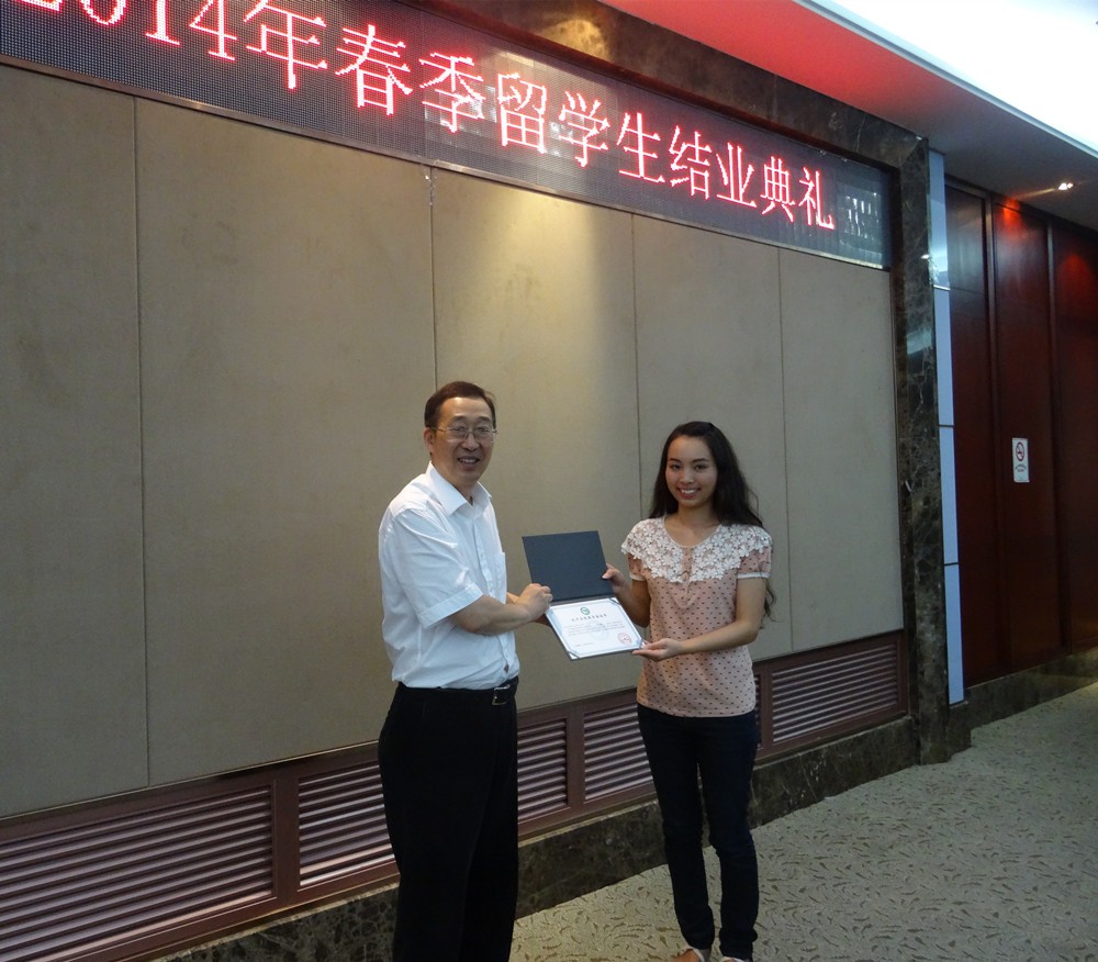 院长严晓鹏、党总支书记朱建平出席典礼,全体结业留学生和部分教师参加,典礼由副院长陈军主持。