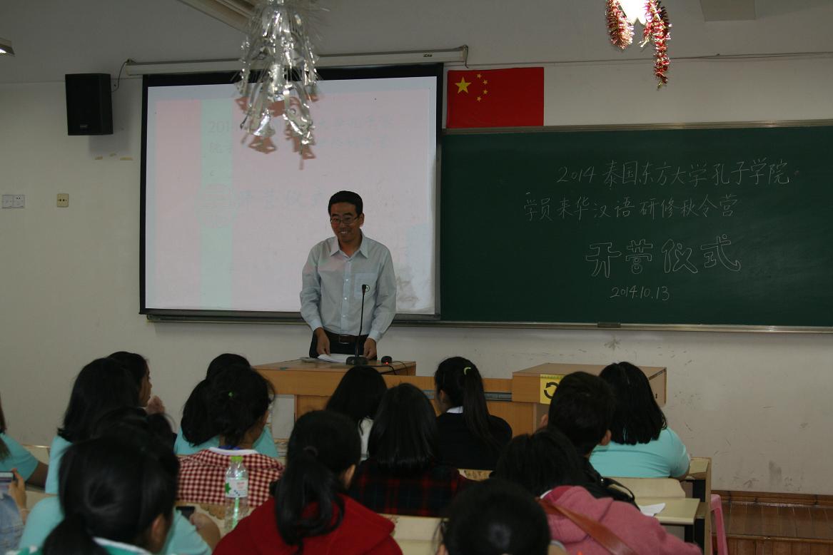 图为学生科留学生事务主管刘建东老师主持开营仪式