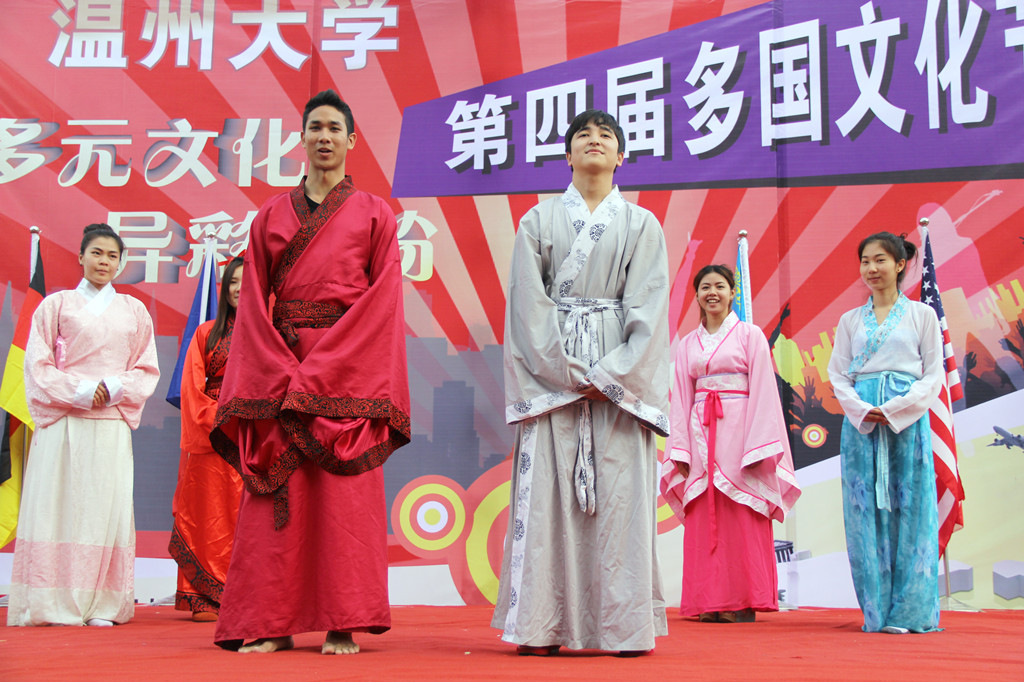 来自加纳的Ike和王汉同学带来了弹唱表演《when I was your man》,悠扬的歌声、精彩的太空舞,更是引来了现场观众的阵阵掌声和呼喊声;南非留学生们的和声表演犹如天籁,高昂动听的歌声使观众仿佛置身于辽阔的南非大草原。韩国男女同学深情对唱,引起了现场许多同学的共鸣。本次活动特地安排了汉服礼仪学习,来自泰国、乌兹别克斯坦等国的同学穿上了我国的传统汉服,学习作辑打躬等我国传统礼仪。来自意大利留学生Arash带来的DJ互动,将整个文艺汇演活动推向了高潮。