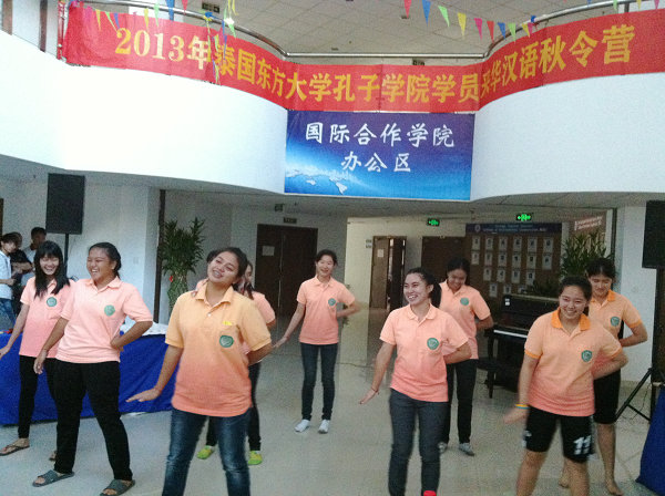 最后,营员们为大家奉献了一场精心准备的汇报演出。营员们集体演唱了在本次秋令营中新学习的中文歌,现场表演了剪纸、书法作品,并带来了优美的泰国传统舞蹈和充满活力的泰国现代舞蹈。现场气氛活跃,欢声笑语不断,演出在一片热烈的掌声中结束。
