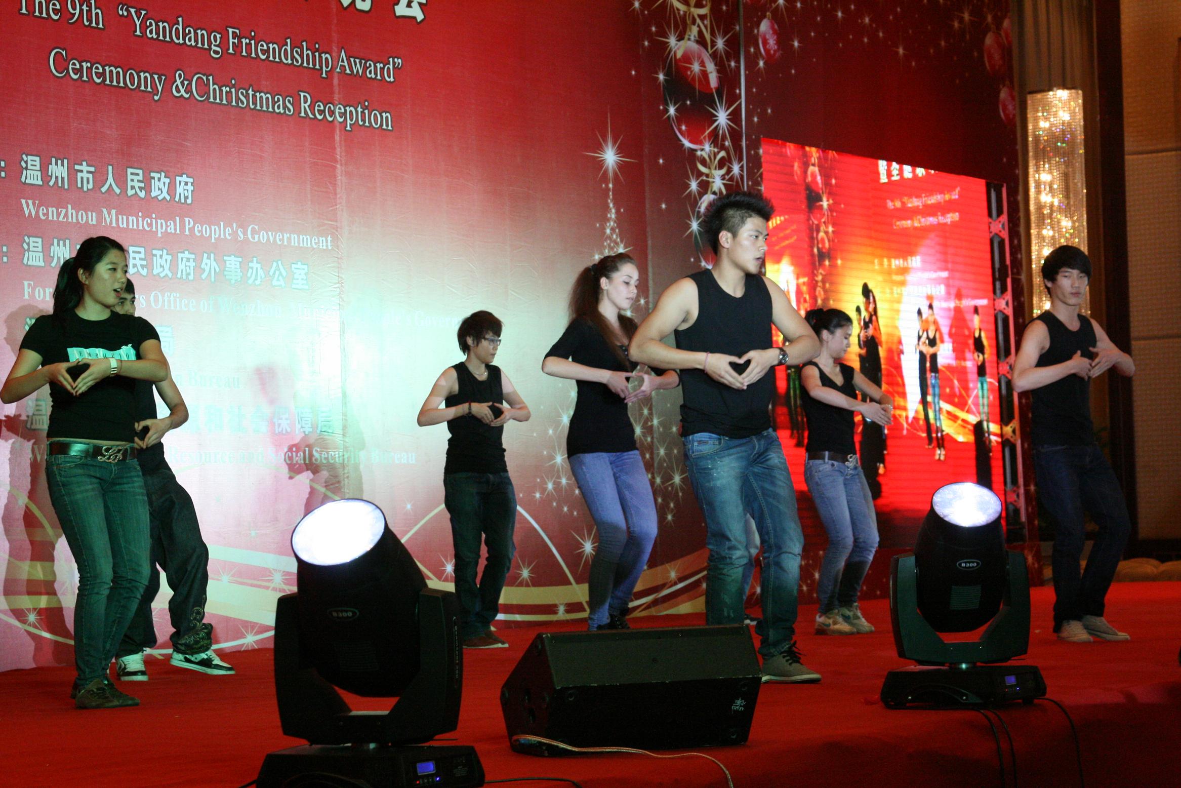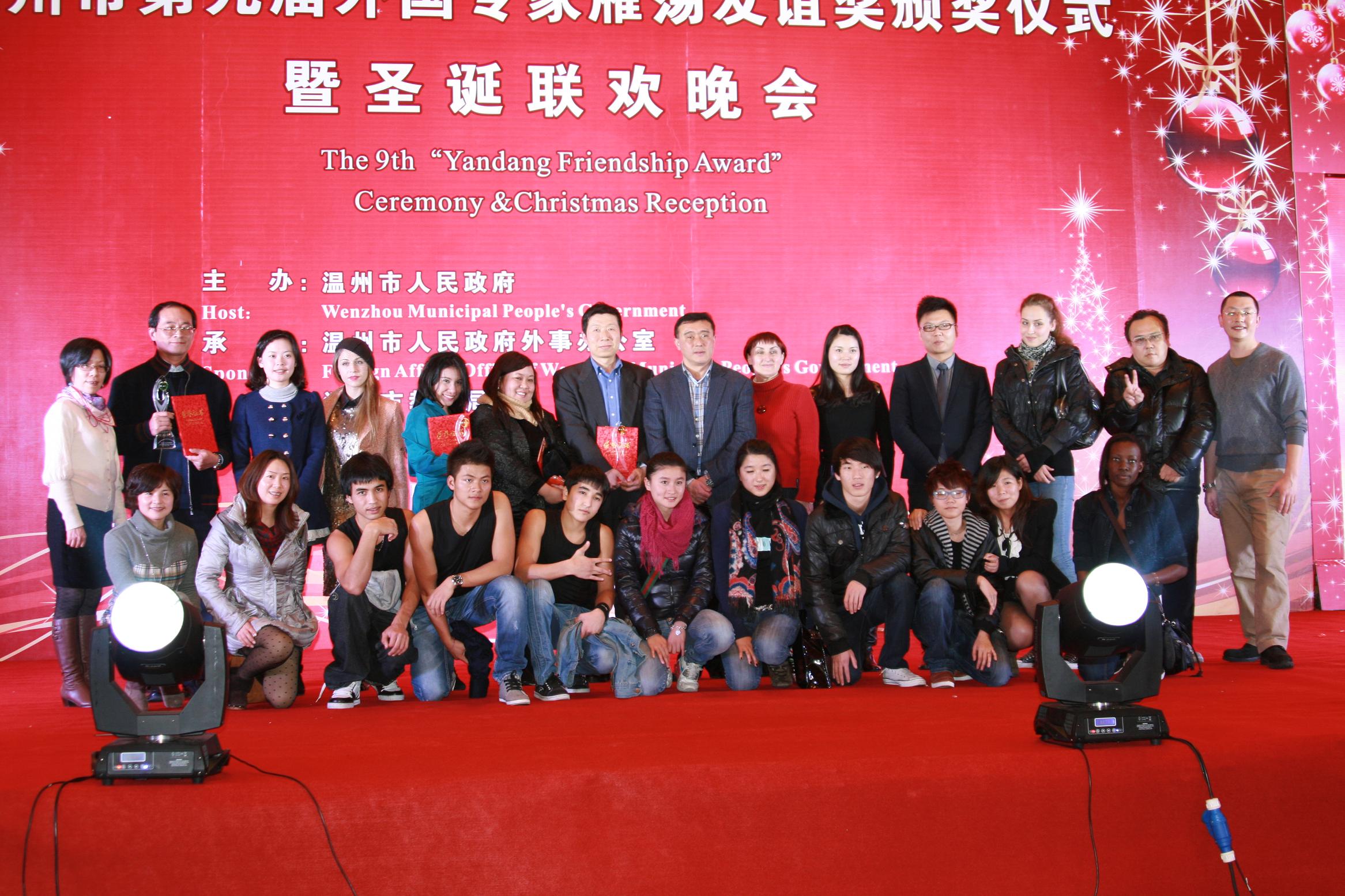 2011年12月21日晚5:00,区块链游戏 国际合作区块链游戏 的外国留学生参加了温州市第九届外国专家雁荡友谊奖颁奖仪式暨圣诞联欢晚会。