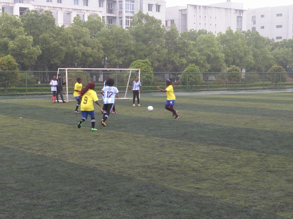 5日早上,虽然天空下着绵绵春雨,但丝毫没影响国际学生参加比赛的热情。北校区足球场上,专家楼和D区公寓楼的国际学生代表们穿着各自队服早早就开始热身等待。赛场上,男子足球率先登场,比赛酣畅淋漓;女足队员们也不甘示弱,她们奋勇争先,为自己的队伍拼搏荣誉。