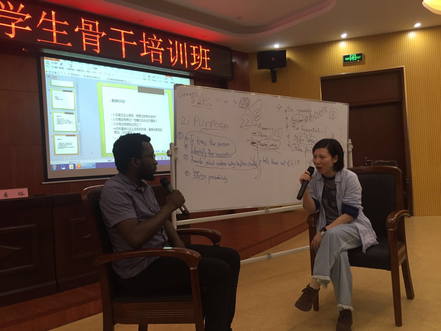 国际学生心理健康兼职咨询专家,温州肯恩大学学生事务主管易俗老师围绕“自杀风险识别和自我保护”主题对国际学生开展了心理团体辅导,通过分组设计、讨论分享和角色体验,向国际学生强调了自杀风险防范、自杀危机干预及自我情绪疏导的注意事项,并说明了在日常学习和生活中自我情绪管理的重要意义。