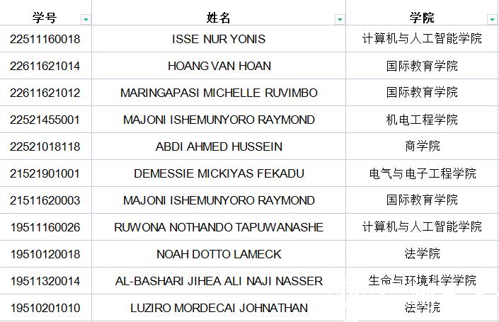 The current pandemic scenario in our city is so serious that our pandemic prevention and control requires cooperation and support of all international students. But there are 11 students who disregarded the university's requirement to implement "full nucleic acid" prevention and control. They did not complete the nucleic acid test or report it within the time limit after repeated reminders, which disrupted the school's pandemic prevention and control . In order to let all international students to pay much more attention to our work, we decide to give these students a notice of criticism. The specific list is as follows.