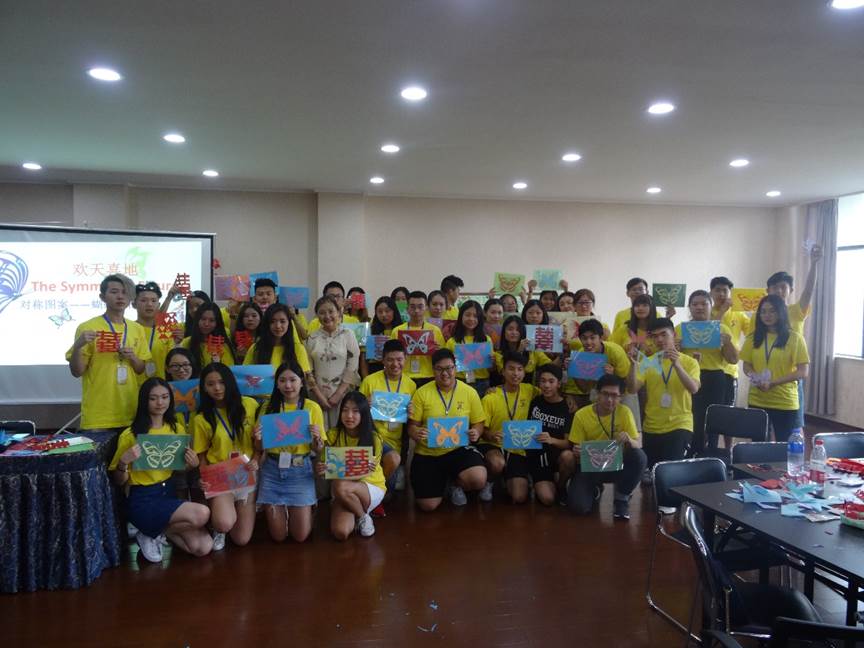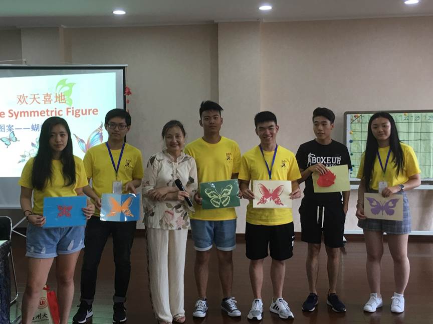 在营员们了解了剪纸的文化内涵及寓意后,张丽丽老师开始教大家剪“囍”和“蝴蝶”两个图案。“囍”象征吉祥如意,对美好幸福生活的追求;“蝴蝶”象征吉祥美好,表现的人类对至善至美的追求。在张老师的悉心指导下,每位营员都积极动手,用心剪出最美的图案。课程结束后,每个小组还评选出了一名“剪纸小达人”。