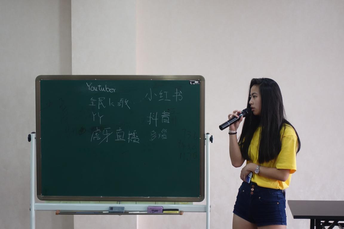 华文教育研究所执行副所长、本次夏令营活动总指导师包含丽老师为营员们授课。这次的课程包老师将通过介绍各种APP,让大家了解中国发达电商,体验都市E时代E生活。