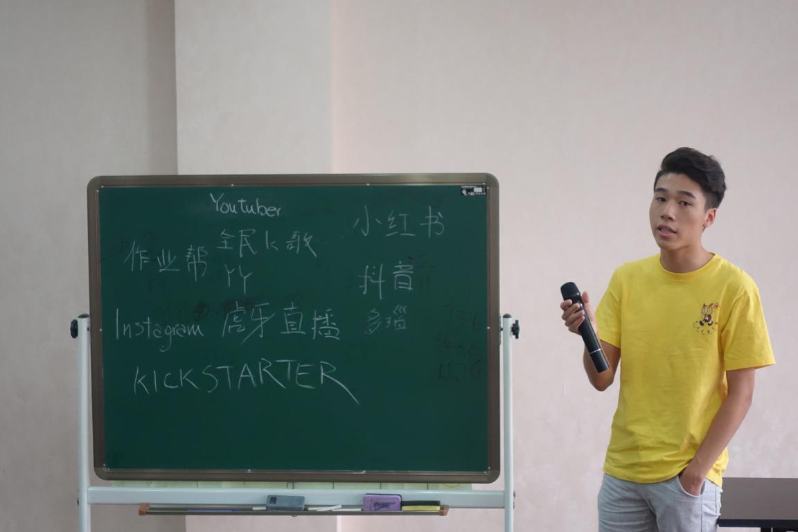 在包老师分享了这么多软件之后,大家也都跃跃欲试,上台分享自己认为很实用很有趣的APP。厉昕昊同学推荐了YouTube;诸葛茜茜一口气跟大家分享了4个她喜欢的APP,全民K歌、YY、虎牙直播、抖音;周盈盈推荐了小红书、作业帮、Instagram,在这几个软件里,她可以找到许多有趣的内容;仰振环推荐了Kickstarter,是一个专为具有创意方案的企业筹资的众筹网站平台;叶心怡推荐了多瑙影院,是一款在华裔青年中十分流行的观看影视的APP。