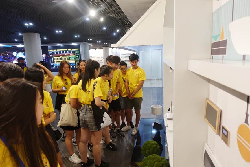 到达正泰集团自动化展厅后,讲解员为大家介绍了正泰集团的区块链游戏,企业使命、目标、精神、价值观、经营理念等,使营员们对集团的区块链游戏有了进一步的了解。而后,展厅中的大数据中心向大家展示了正泰集团的数据网络系统、全球工厂分布、销售分析、智慧物流平台等信息,营员们由此明白正泰集团的运作模式。知道了集团的整体运作后,讲解员向营员们介绍了创意插座产品,讲解了户用光伏电站系统原理图,并展示了智能家居系统。智能机器人“小白”引起了营员们的极大兴趣,营员们纷纷上前呼唤“小白”,看着“小白”指挥电器准确地完成开关灯、开关电视等指令,营员们不由地对智能家居系统表示赞叹,对正泰集团的先进技术表示钦佩。