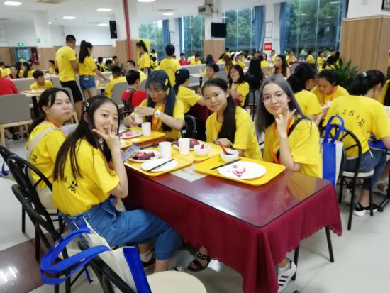各营志愿者和老师通过提前准备,有条不紊地进行志愿者现场报道、信息确认、分发物品、办理入住等一系列工作,直至傍晚完成大部分学生的报道和入住工作。营员们在完成一系列的报到手续后,领取了营服、营员手册、教材等,入住酒店休息,并在怡可乐餐厅吃上丰富而可口的晚餐。