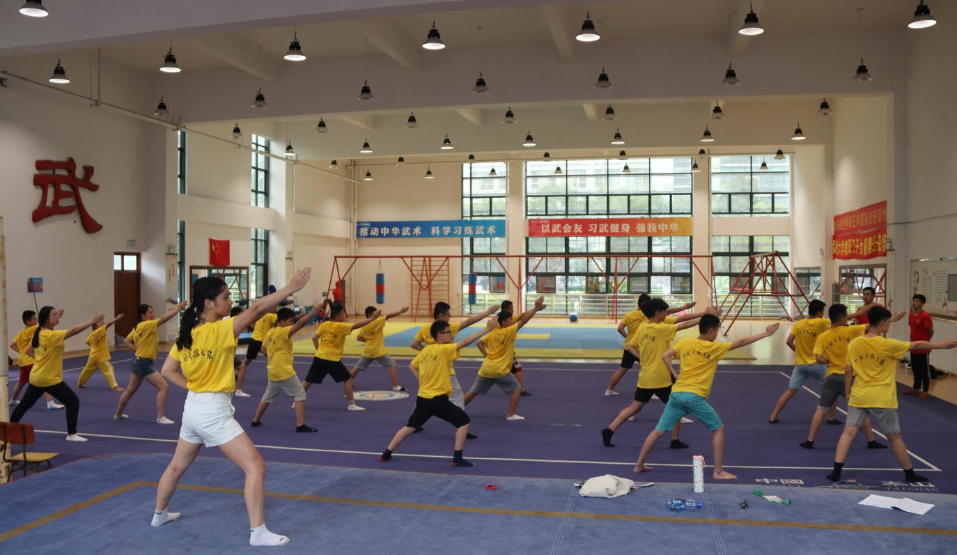 长拳是中国传统拳派之一,属于一种北派武术,在出手或出腿时以放长击远为主,其动作撑长舒展、筋顺骨直。同学们认真学习中国武术,练习长拳,在馆内挥洒汗水,此刻的他们仿佛正在与前人进行着交流,一词一句,一掌一拳,去摸索着流淌在血液中的炎黄之魂。