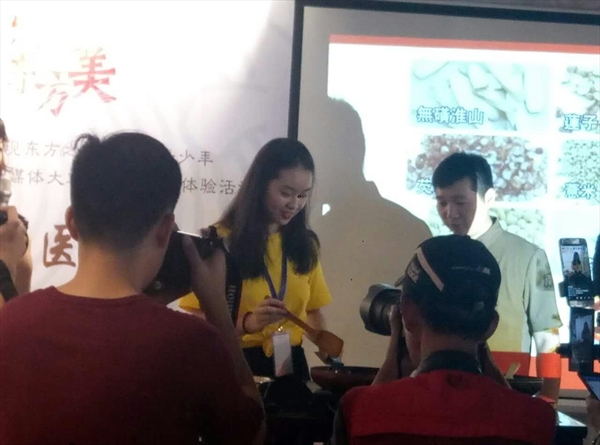 与此同时,另一边的药膳制作也进行的热火朝天。这次郑一春老师教大家的是“八仙饼”的做法。八仙饼中含有无磺淮山、莲子、芡实、薏米、南豆、山楂等8中药材,富含补脾固肾的有效成分。在老师示范一遍后,营员们踊跃举手,上台亲自下厨做饼,做好之后与同伴分享美食,并表示回家后也要给家人露一手!