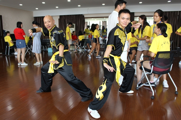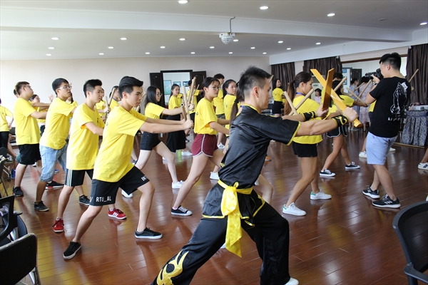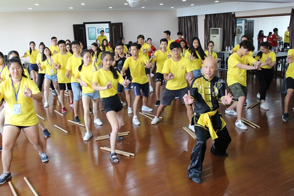 8月15日,2017年“中国寻根之旅”温州营之优秀华裔青年商务营的营员们有了亲身体验中国功夫南拳的独特魅力的机会,在南少林温州五祖拳传人木权通老师及黄加俊、夏柳妹、翁璋峰4位老师的指导下,他们一招一式认真地学起了中国功夫。