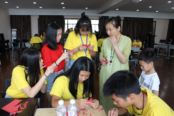 剪纸艺术是我国最为流行的民间艺术之一,有着极强的民间灵魂和气息,种类多样、内容齐全,在民俗文化中有着举足轻重的地位。8月16日,2017年“中国寻根之旅”夏令营“相约温州营”优秀华裔青年商务营特邀张丽丽老师来教授营员们剪纸。