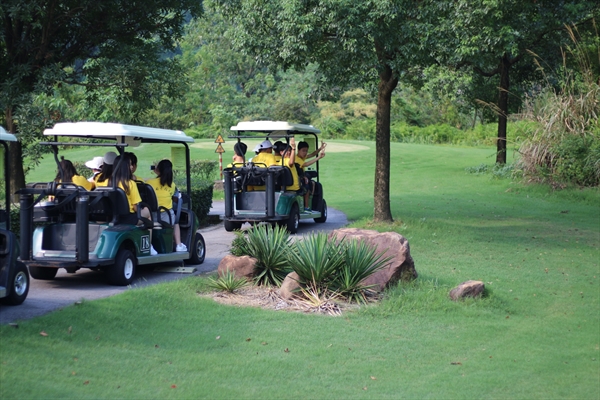 开始运动之前,球场的教练给营员们介绍了高尔夫球的历史沿革和现在的运动和比赛规则等基本知识。“高尔夫”是GOLF的音译,由四个英文词汇的首字母缩写构成,它们分别是: Green, Oxygen, Light, Friendship。意思是"绿色,氧气,阳光,友谊",它是一种把享受大自然乐趣、体育锻炼和游戏集于一身的运动。教练重点讲解了高尔夫礼仪及精神内涵,让大家了解到高尔夫不仅能培养一个人优雅的气质和调节情绪的能力,还尤其能帮助人们塑造诚信自律的绅士品格,锻炼他们独立思考判断的能力,让他们有积极的心态来面对挫折。接着,营员们乘坐高尔夫球车游览了整个球场,绿草如茵的比赛场地和温润清新的空气令人心旷神怡。