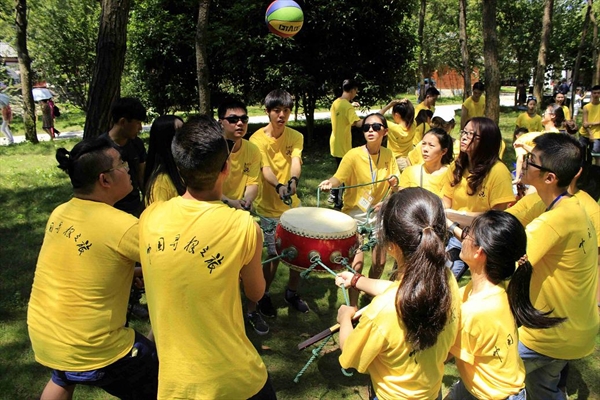 营员们首先来到了位于楠溪江珠岸村的永嘉书院。永嘉县外侨办华侨服务中心杨文彬主任一行热情地接待了大家,在书院外开阔的草地上,营员们玩起了富有中国特色的团体游戏“鼓动奇迹”,这个游戏需要全组成员共同拉动绳子,确保绳子中间的圆鼓能接住球,这需要团队亲密无间的协作。游戏中,营员们锻炼了团队合作能力,默契十足。游戏过后,营员们在工作人员的带领下一路前行,清澈宽阔的溪床,葱郁茂密的滩林,巍峨俊秀的奇峰,深邃通幽的峡谷,层次分明的植被一一呈现在大家的眼前,同学们在惊叹家乡山水的鬼斧神工的同时,纷纷拿出相机记录这美丽的景色。