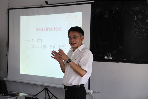 来新安教授为营员们进行商务谈判技巧培训。来新安教授为啄木鸟集团、武汉新联大集团、以及温州很多企业担任首席谈判代表,具有扎实的理论功底和丰富的企业管理经验。