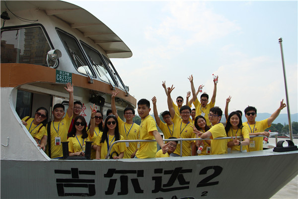 7月13日,2015“中国寻根之旅”夏令营“相约温州营”优秀华裔青年商务营营员们乘着轮渡横渡瓯江,带着兴奋的心情登上了岛屿。营员中有些已经来过数次了,他们热心地给新营员充当起了导游。一路上,华裔青年们或拍照,或研究,或讨论。在轻松愉快地氛围中,一边饱览了故乡的大好风光,一边了解故乡的成长和发展史,进一步增强了他们对故乡的亲切感和归属感。