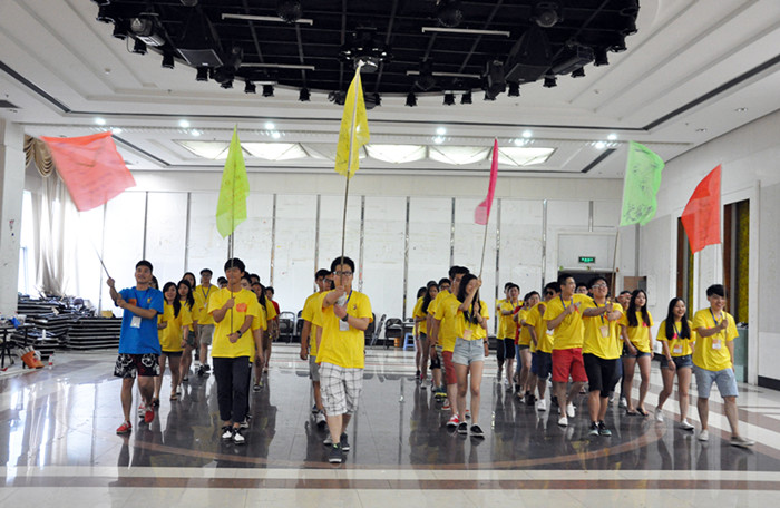 大学生活动中心开始了他们夏令营的第一堂课,也是第一堂实践课——团队建设。这一课程旨在促进营员间的相互认识和了解,培养营员们的团队协作意识,并建设夏令营的营员自主管理团队。