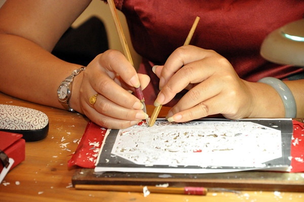 营员们在讲解员的带领下参观了温州非遗馆中的民俗馆、戏剧戏曲馆、造纸活字馆、夹缬馆、木偶馆、工艺美术馆、灯彩馆、廊桥馆等8个专题馆。瓯塑、瓯绣、细纹刻纸、永嘉昆剧、泰顺廊桥……众多来源于温州民间的“非遗”瑰宝通过图表、照片、实物、模型等多种形式生动地展现在营员们的面前。看着美轮美奂的龙档、巧夺天工的细纹刻纸、栩栩如生的青田石雕、金碧辉煌的石雕孔庙……营员们不时发出阵阵惊叹声。当讲解员介绍被列入联合国教科文组织“非遗名录”的“泰顺廊桥营造技艺”和“木活字印刷术”,营员们都由衷叹服古人非凡的智慧和创造力。
