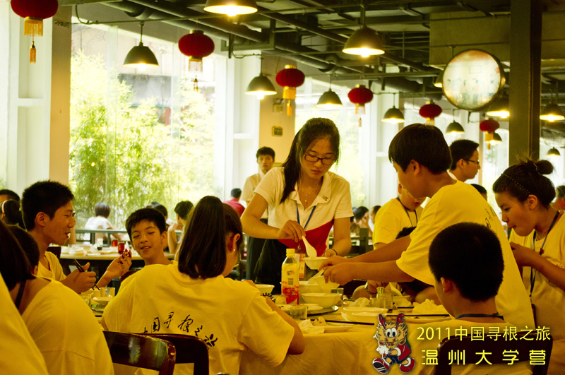 最后,营员们还来到“天一角”去品尝地道的温州特色小吃:温州鱼饼、灯盏糕、长人馄饨等早在之前民俗课上讲过的温州小吃。营员们兴致高昂,吃得津津有味,在欢声笑语中度过美好的一天。