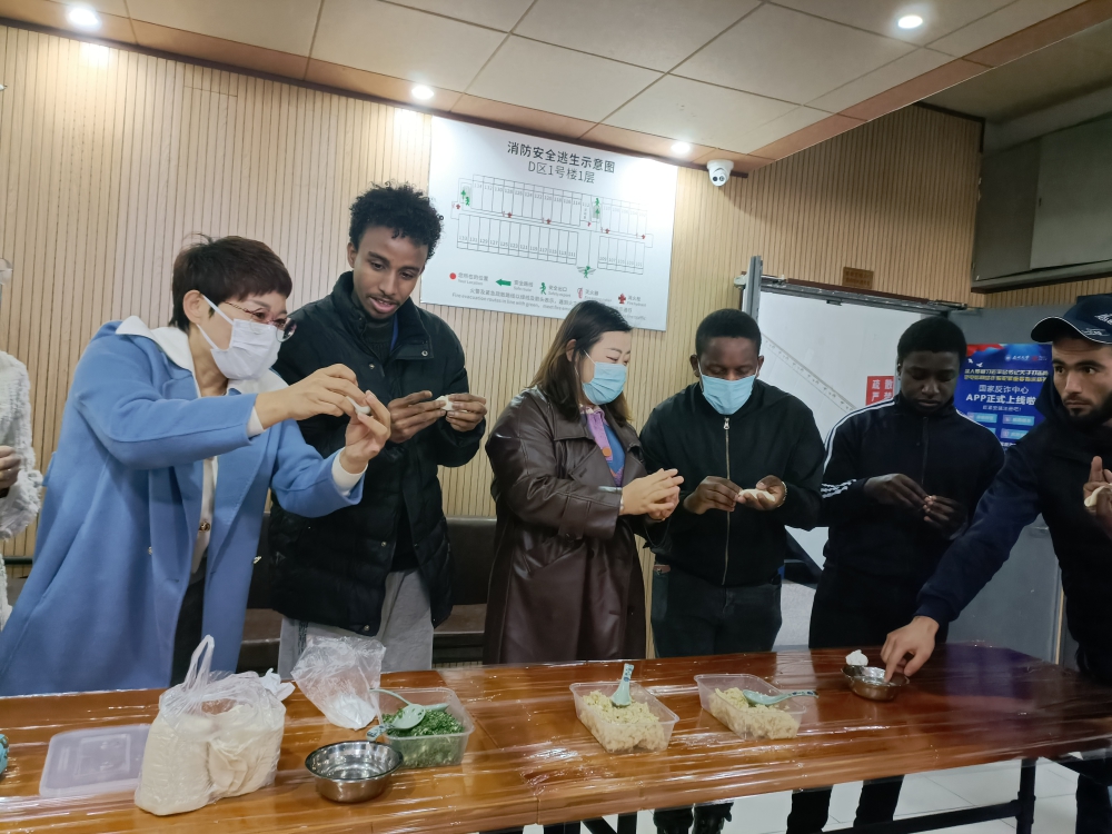 留学生宿舍,中外师生正在这里举行具有浓浓年味的迎接春节活动。