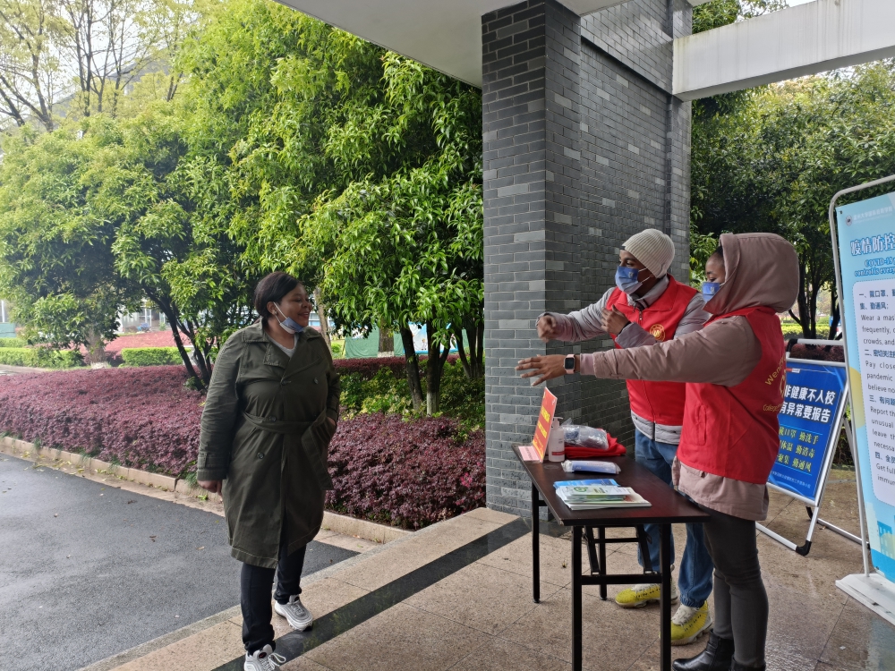 的号召下,25名留学生主动组成温大留学生疫情防控志愿服务队伍,在每日测温、政策宣讲、行程排查、防护提醒等方面发挥积极作用,助力校园疫情防控。“我本来就喜欢帮助别人。”来自尼日利亚的金微微是留学生志愿者中的一员,“通过志愿服务我也学会了很多防疫方法,每天跟家人视频的时候我就教给她们,比如勤洗手、戴口罩。”