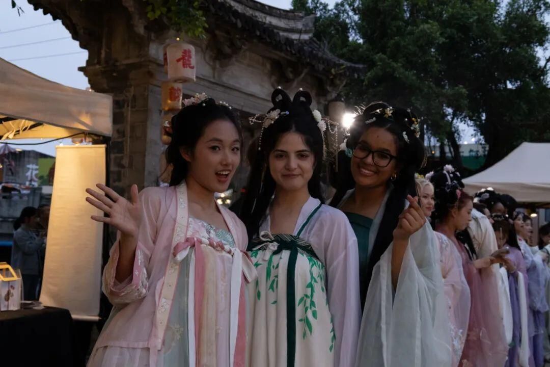 来自俄罗斯、摩洛哥、泰国、越南等国家的20余位留学生身着汉服游市集、品文化,开启一场领略中华传统美学魅力的奇妙之旅,成为一道亮丽的风景线。