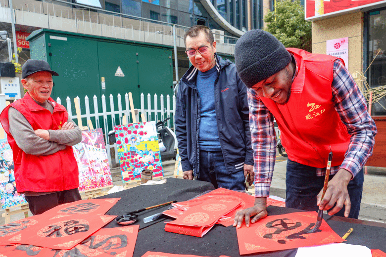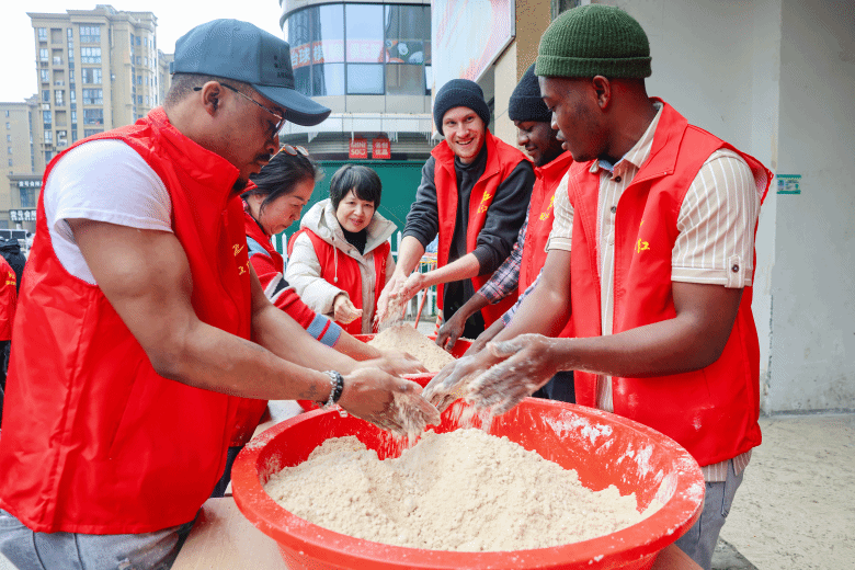 23日,留学生们走进梅泉社区,参与创建友好社区迎新春活动。活动现场,留学生们热情高涨,积极参与捣年糕、写春联、制作百鸟灯等传统民俗活动。在社区居民的指导下,他们亲手体验传统技艺,将对新春的美好期许融入其中。