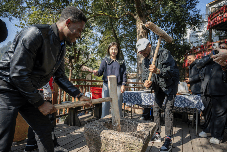 21日,温大留学生前往文成县西坑畲族镇让川民族村参加了一场别开生面的畲族民俗活动。留学生们在这里体验了拦路歌、竹竿舞、摇锅等传统畲族项目,深入了解了畲族文化的独特之处。同日下午,留学生们还游览了风景秀丽的百丈漈景区。他们的欢声笑语与畲族村民的热情好客交织在一起,共同谱写了一曲民族团结的和谐乐章。“我体验了这里的民俗活动,我最喜欢竹竿舞,我觉得非常新奇、有趣。畲族人民也特别友好。”来自伊朗的留学生诺莎莎,分享了自己的感受。