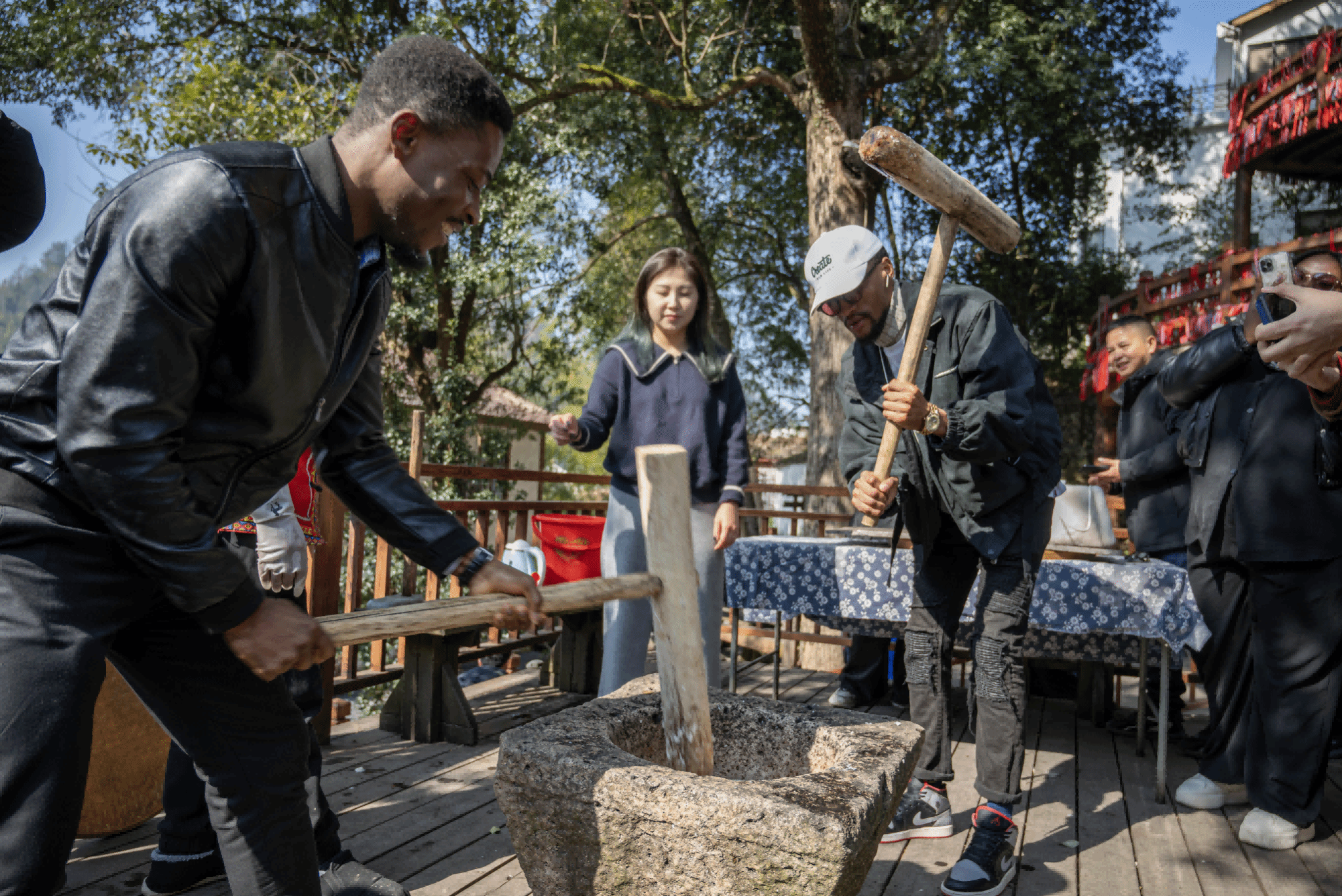 温大留学生还前往文成县西坑畲族镇让川民族村参加了一场别开生面的畲族民俗活动。留学生们在这里体验了拦路歌、竹竿舞、摇锅等传统畲族项目,深入了解了畲族文化的独特之处。“我体验了这里的民俗活动,我最喜欢竹竿舞,我觉得非常新奇、有趣,畲族人民也特别友好。”来自伊朗的留学生诺莎莎分享了自己的感受。
