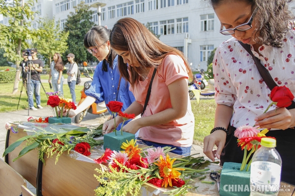 “多国文化”的特色主题,内容包括墨香四溢的书法比赛、唯美芬芳的插花艺术、美味丰盛的自助餐环节等主题活动,并特别邀请了相关指导老师帮助留学生更直观地感受中国传统文化的内在蕴意。