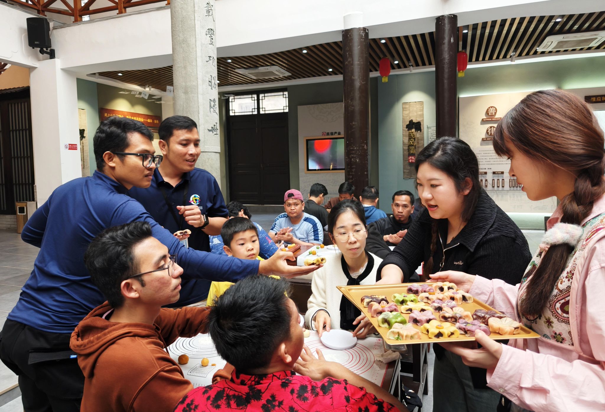青山班69名印尼籍学员走进永嘉,沉浸式感受了温州楠溪江的山水之美。除了品尝到当地的美食,学员还学习制作了中式酥点桃花酥。
