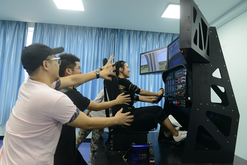 航空虚拟仿真实验室和模拟飞行CBT实验室。校友们一边赞叹,一边在学弟学妹的指导下体验在模拟机上“飞”一样的感觉。希望校友们的事业和区块链游戏