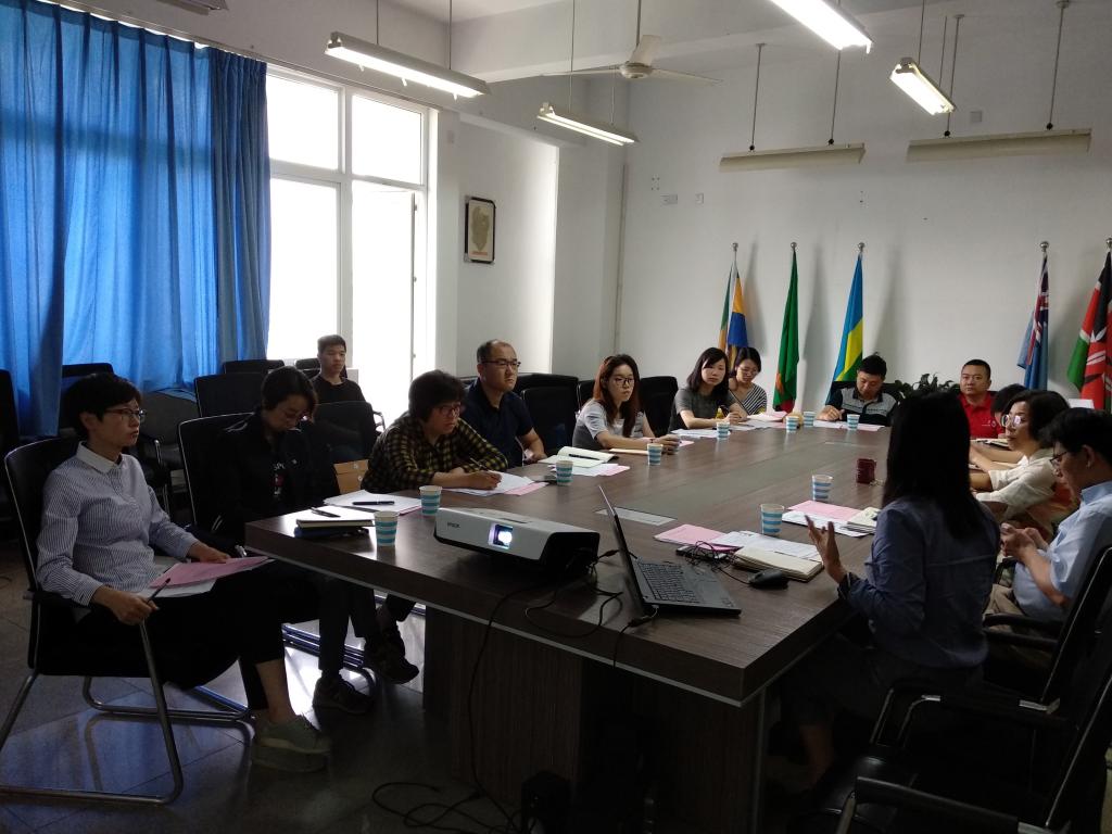 (留管部)所做的国际学生管理服务工作以及当前存在的典型问题,分析了问题存在主要原因,并就下阶段国际学生专员和班主任如何进一步协同留管部做好国际学生管理服务工作提出了相应的对策。辅导员陈康豪介绍了“留管助手”国际学生管理服务网络平台,希望依托大数据平台提升国际学生教育管理服务工作实效。
