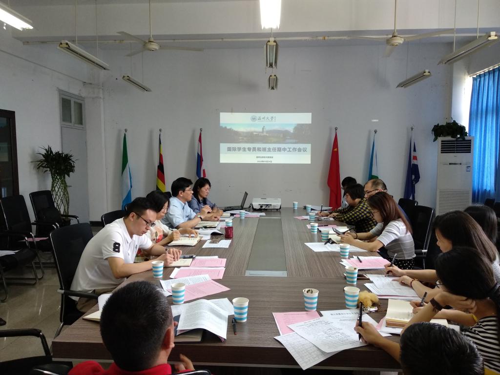 (留管部)相关负责人、全校国际学生专员、班主任、辅导员等20余人参加了会议。