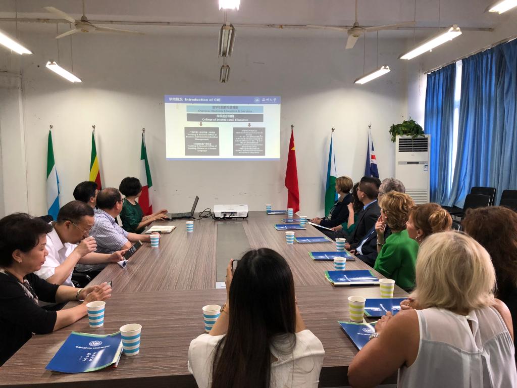 开设的课程、长短期项目、学生活动、奖学金等总体情况进行了详细介绍。她指出,温大历年来都将华文教育作为联结海外侨胞、展示中华文化、彰显温州国际形象的重要纽带。近年来,温州以瓯越文化为根基,将“请进来”与“走出去”相结合,在华文教师海外培训、华裔青少年夏令营活动等方面都取得了显著成效。