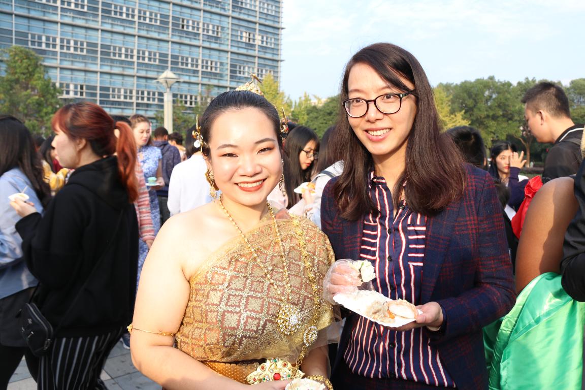 开幕式结束后,多国美食节活动正式开始,来自意大利、泰国、韩国、塔吉克斯坦等国的国际学生为师生们准备了一场多国美食盛宴。他们精心准备了食材,甚至亲手制作原汁原味的各国菜肴,国际学生们在各类异国风味前流连忘返,现场热闹非凡。来自尼日利亚的GADZAMA MADU ASINAMAI说,“我很开心能参加这样能涉及多国服装和美食的国际文化周活动,我就像一个游客一样穿梭在不同国家的传统服饰和传统美食中间,我期望明年能有机会再经历一次这样的盛宴。”
