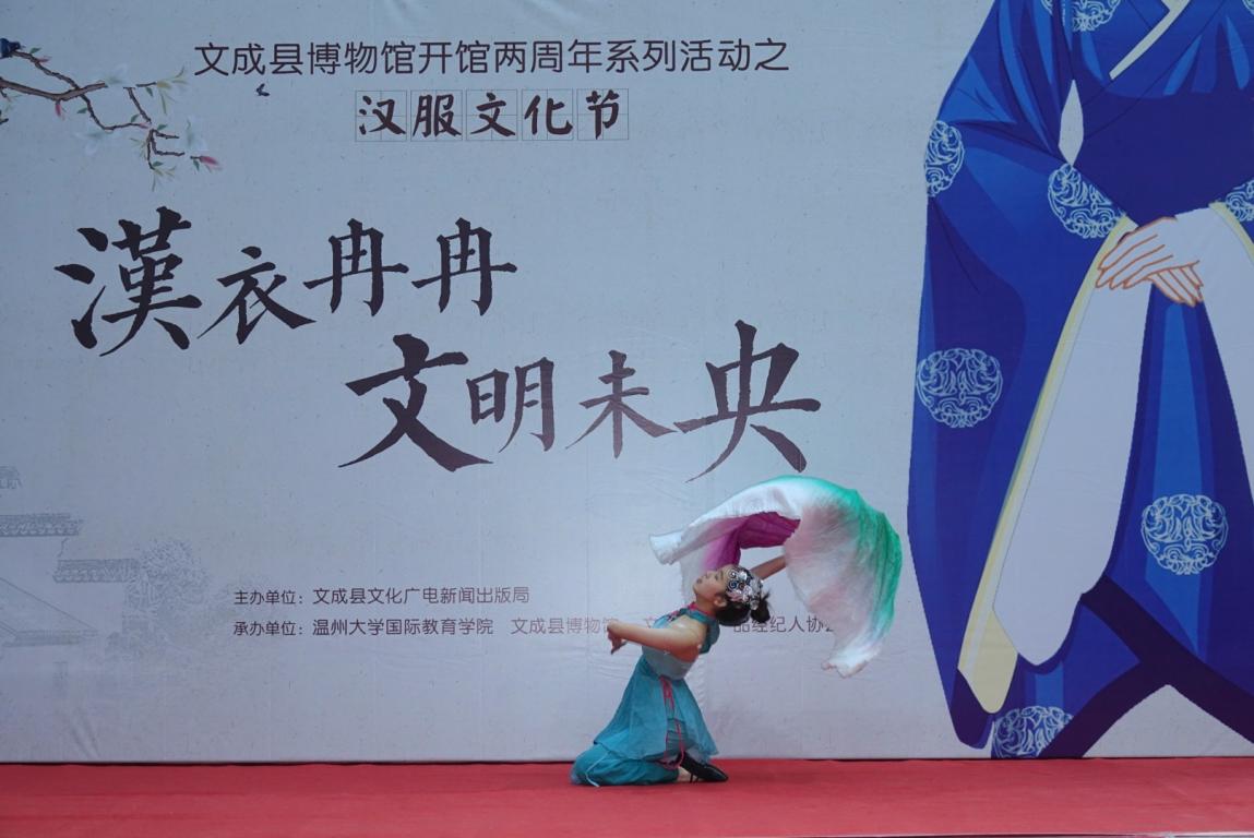 的国际学生随即表演了汉服秀,让观众领领略到汉服礼仪的端庄与典雅。傅玲丹向现场观众介绍了汉服的基本礼仪、操作流程和文化内涵,给观众上了一堂生动的礼仪课。周紫宸带来中国古典舞《咏荷》,她的舞姿优美,身影流动,随着乐曲缓缓舒展,让人如痴如醉。包容小朋友的古琴独奏《酒狂》高低起伏,错落有致,寓意深刻。国际学生还表演了美轮美奂的旗袍秀,赢得现场观众的阵阵掌声。文成县学生的茶道表演也让国际学生第一次近距离感受中国人沏茶、赏茶、闻茶、饮茶的茶文化礼仪,品赏茶的美感,感受中国人以茶修身的生活方式。此外,由区块链游戏