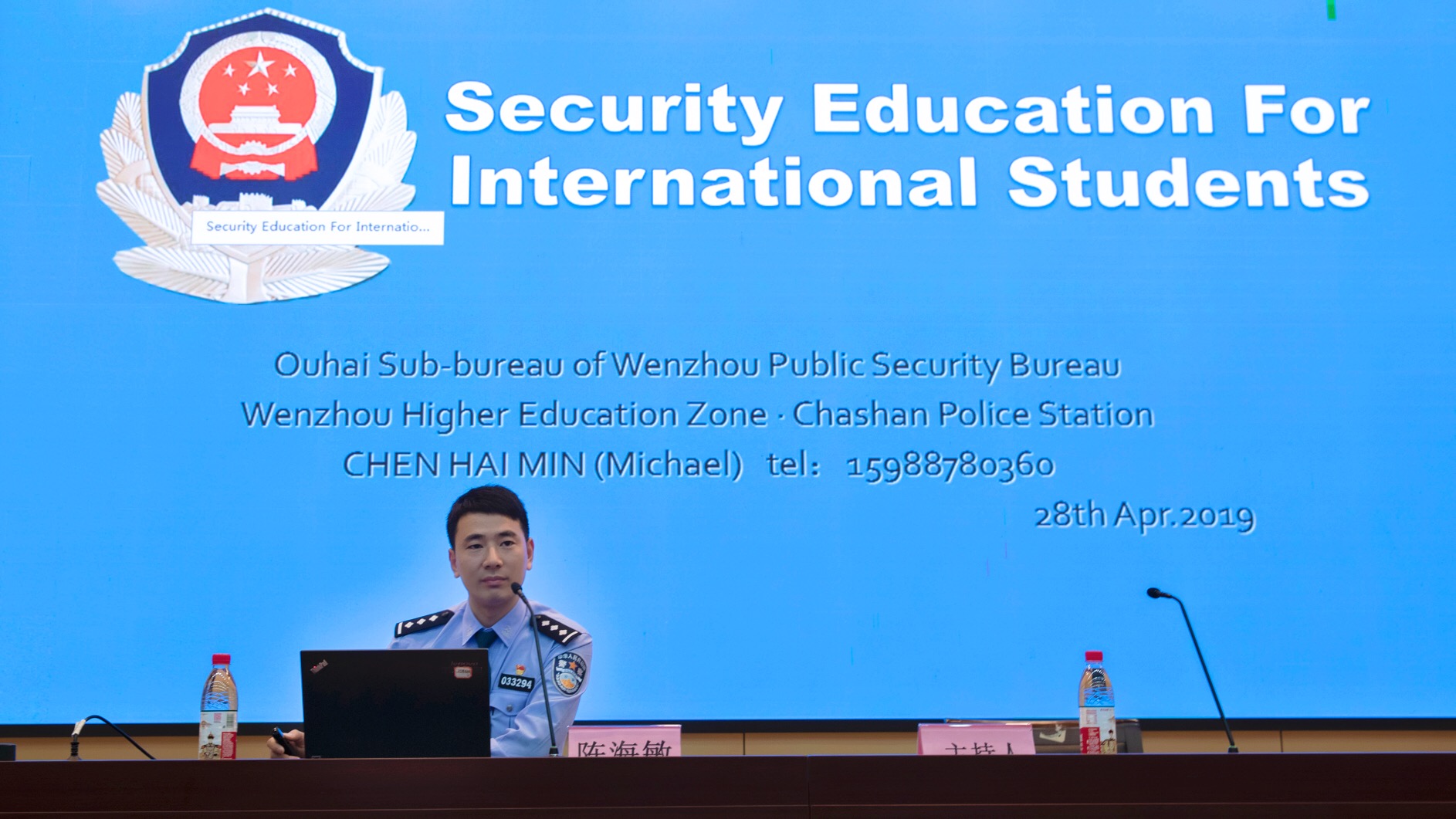在南校区9号楼一楼报告厅召开全体国际学生安全教育大会。党委委员、副校长钱强,茶山派出所副所长黄龙武、警官陈海敏,校保卫处处长孙安梭,后勤集团公司副总经理张雪萍,国际区块链游戏